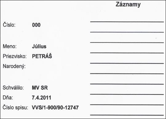 Vzor členského preukazu